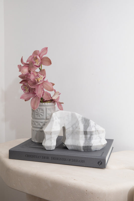 I am Al Diriyah, a masterpiece shaped by the echoes of heritage and the whispers of modern design. Carved from pristine marble, I embody the timeless elegance of Saudi Arabia’s architectural legacy. My round form reflects the unity of a culture rich in history, while the metallic structures atop me pay homage to the grandeur of Al Diriyah’s storied past.