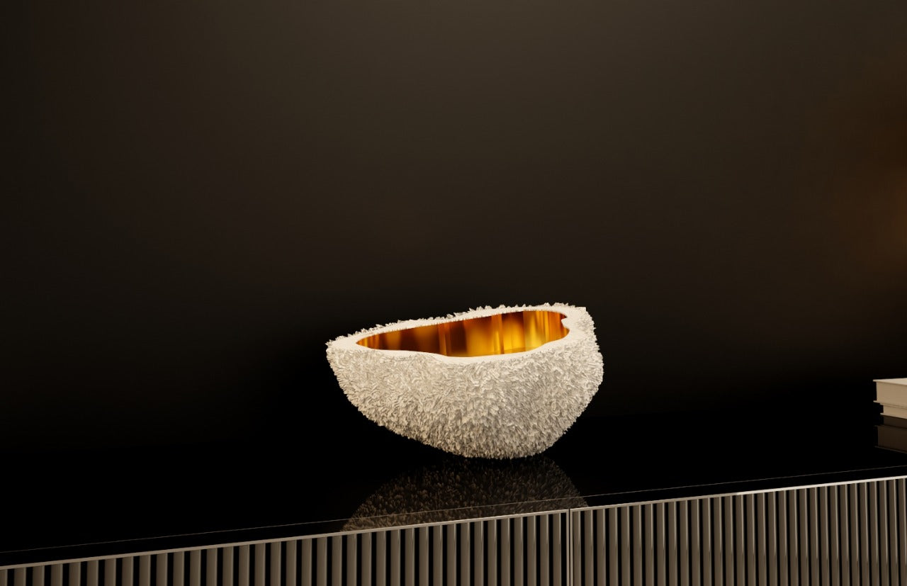 white concrete with copper inside